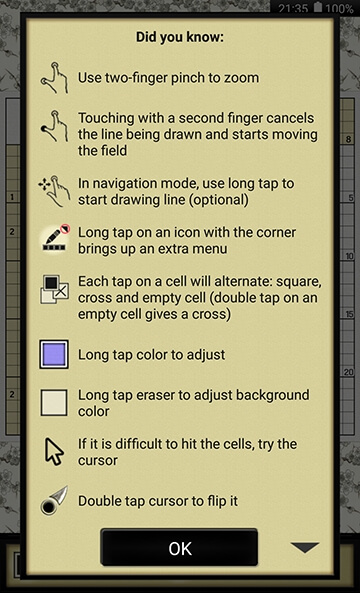 - Use both crosses and dots to mark cells